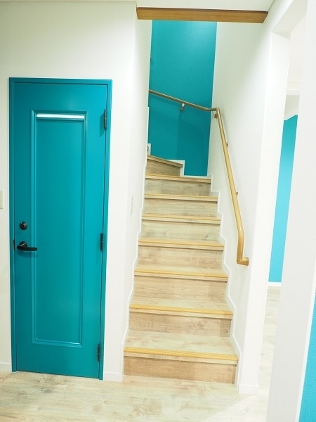 階段にも塩ビタイルを貼りました。